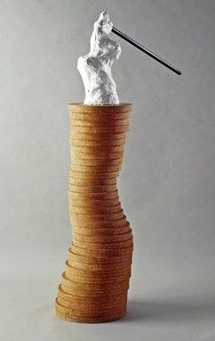 Rui Sanches is a multimedia artist, whose interests and explorations have led him over the years to experiment with different media and forms of expression, from drawing, painting and installation to sculpture. He describes his work practice as a pragmatic, rather prosaic sequence of actions of designing and assembling. Yet the finished artwork is much more than the sum of these gestures: it functions as a “statement”, expressing a tightly-knit artistic reflection.[2] As such, the first challenge of the artwork, for both artist and viewers is to discover which questions it has provided an answer to and which new ones it raises. Thus, the completed artwork remains open and each viewing gives rise to fresh interrogations and a continuous dialogue around it. The sculpture is the embodiment of an idea or reflection on a given topic, and, as such, offers an answer regarding the form which this idea could take. However, there is an important dynamic component in Sanches’s vision of the artwork-as-statement. This comes across physically, in the configuration of the sculpture, its texture and modelling, and in the relationship of proximity it develops with the space it occupies and with the spectator, whom it asks to come closer and move around it in order to discover its different sides. Furthermore, this animation is present at a conceptual level in connection to how the artist uses and subverts each of the dimensions of his creation. These include the choice and treatment of the materials, the composition and subject of the artwork, and the interactions between these. Each of these aspects challenge our perception and interpretation of the work, prompting us to question, reflect and discover.